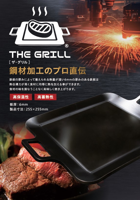 昨今は鋼材加工で発生する端材を活用して自社開発した 極厚バーベキュー用鉄板『THE GRILL』も展開しております。
